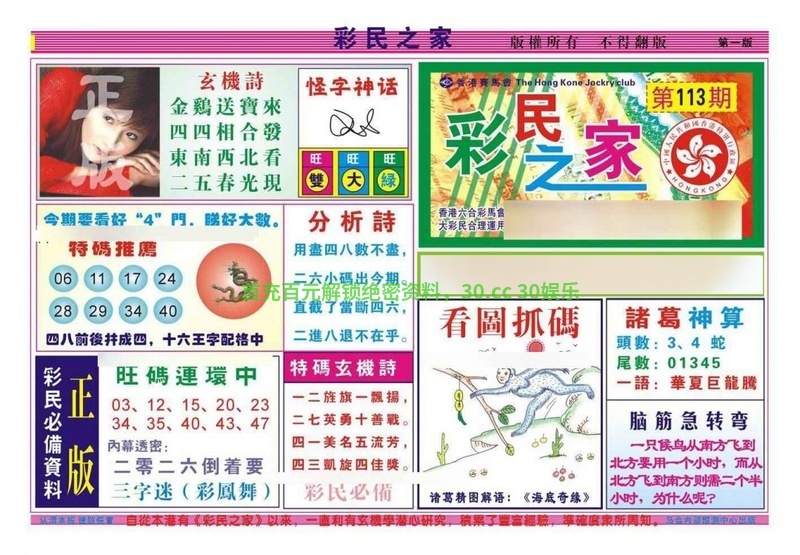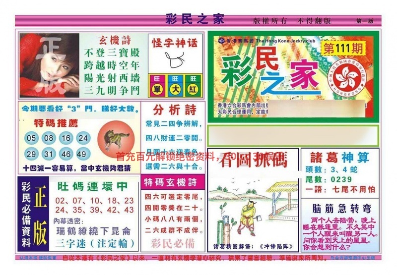 116期:【港彩玄机★极品一波★中特好料】